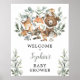 Este sinal de boas-vindas ilustra aquarelas moles, vegetação sensual e doces animais florestais. Perfeito para um chá de fraldas/aniversário neutro em termos de gênero.