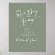Sábio Verde Bem-Vindo Sinal de Janto de Ensaio. Sinalizador Simples Personalizado A Um Dia De Distância. Basta clicar no link personalizar mais, mostrado na área de personalização de texto à direita, e escolher seu fundo de cor personalizado. Este poster de placa faz com que seja rápido e fácil criar acréscimos incríveis à decoração do casamento. Os sinais podem ser ampliados, há muitos tamanhos a serem escolhidos, assim como opções de enquadramento e correspondência personalizados.