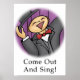 Há várias possibilidades nesta design. Saia do armário e seja quem você é? Sai da sua palco e brilha? Cante com o nosso grupo de corais ou trupe de comédia musical? Personalize com os seus próprios pensamentos, o nome do seu grupo, organização ou evento "sair cantando". (Ou basta usá-lo de forma simples.)