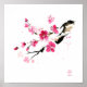 Sakura rosa floresce. Pintura tradicional de tinta sumi-e no Japão. Poster de arte por Sveta Mikhalevich