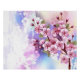 Articulação artificial, ramo de cor-de-rosa, cereja floresce sobre fundo picturesco, texturizado, pintado com tinta branca, rosa e azul. Pink Sakura