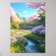 Esta trabalho de arte digital mostra a beleza serena de um pequeno riacho com árvores cerejeiras floridas de ambos os lados, encontrando-se no meio com uma charmosa ponte de pedra. As delicadas pétalas cor-de-rosa das flores de cereja contrastam com a água azul tranquila, enquanto a verde-luxuosa no fundo cria uma visão de tirar o fôlego. A peça de arte captura a essência do primavera e a pacificação da natureza, fazer-a como uma adição perfeita à coleção de qualquer amante da natureza.