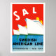 Vintage ocean poster para a linha sueca americana mostrando uma visão arco de três quartos da sua frota transatlântica do século médio.