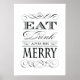 Poster elegante vitoriano estilo vitoriano para cozinha, bar, café ou restaurante. As palavras dizem: "Coma Bebida e Seja Feliz!" A cor branca do fundo é personalizável.