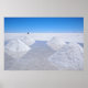 Poster de impressão de pilhas de sal secas com reflexo na água à espera da colheita no Salar, os apartamentos salgados Uyuni, no sul da Bolívia. decoração de excelente na sua parede!