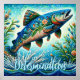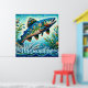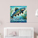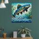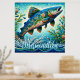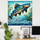 Poster Salmon Jumping Mosaic Floral Blue Personalized