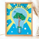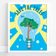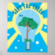 Pôster Salve As Árvores Lâmpada Ambiental. Este lindo design apresenta uma árvore dentro de uma lâmpada. Personalize este design personalizado com o seu próprio texto.