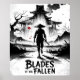 Um samurai solitário caminha pelas ruínas, katana na mão, em direção a um templo desmoronante numa cena sombria e dramática.