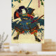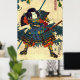 Painel esquerdo de um impressão japonês mostrando Samurai Hashiba Hisakichi em armadura de cheio, espadas e lança sob uma árvore florida. Assinado, Motome no Ozen, Toyokuni ga e selo de censor, Kinugasa Hama. De um corte original do século XIX (1860), Hashiba Hisakichi, Miaso Gozen, Buchi Gujiro, Buchi Mitsuhide, de Utagawa Kunisada. Todos os direitos reservados © 2012 padre art
