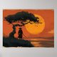 Poster Samurai Under Sunset Tree in Traditional Japanese
