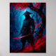 Poster Samurai Warrior com Glosing Katana Fantasy