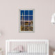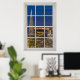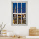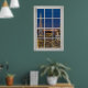 Enhance the decor of any room with this picturesque poster. The artwork creates the illusion of having a white wood picture window on your wall. Look out your fake window and see the San Francisco Skyline with a dark blue night sky.