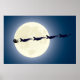This patriotic military holiday Christmas poster features Santa Claus and his sleigh pulled by a team of F-16 Fighting Falcon jets with a full moon background.