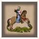 Embora muitas vezes retratado como um cavaleiro medieval, o Santo George era um tribunal militar do início do século IV, no final do terceiro trimestre (cerca de 303 mártires). De acordo com a lenda, George matou heroicamente um dragão que estava aterrorizando o campo ao redor de Silena na Líbia. Este retrato particular do santo guerreiro de Richard H. Fay o retrata armado como um cavaleiro medieval do século 13.