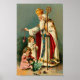 Santo Nicholas dando presentes a boas crianças. Vintage retro Natal cristão, legal, bonito, colorido, único e lindo, original religioso, criativo, figura antiga e fantasia de arte.
