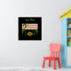 Música em folha retratada com um sapo de touro como uma nota baixa e uma tad pole como um clave de baixo. As cores são feitas em verde e amarelos para os sapos e marrom-turvo para as linhas de folhas.