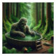 Pôster Sasquatch Bigfoot tomando banho na floresta