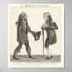 Nesta maravilhosa sátira, o Ministro dos Negócios Estrangeiros francês pergunta a um diplomata britânico como está a fazer. O diplomata britânico diz que não pode falar por si próprio nesta matéria, para saber como responder, tem de enviar um despacho para Londres. Na imagem, o emissário britânico Lorde Malmesbury (à esquerda) e Charles-François Delacroix, Ministro dos Negócios Estrangeiros sob a Direção (à direita), veem-se confrontados uns com os outros, vestindo um sorriso dissonante. Gravadas no fundo estão as palavras imaginadas. Delacroix, em pé de chapeau-bras e segurando uma bengala, diz "Bon jour Mylord! Je suis charmé de vous voir à Paris, comenta vous portez-vous?" (Bom dia, Mylord. Encantado em vê-lo em Paris, como está?) Malmesbury responde. "Je vous suis obrigados é de votre gracieuse demande, mais ne pouvant répondre de moi-même, je vais dépêcher un courier a Londres; et à son retour, je saurai la réponse que je vous faire." (Muito obrigado pela sua graciosa pergunta, mas incapaz de responder por mim, tenho de enviar um despacho para Londres e quando, volta, saberei o que devo dizer a você." Numa sátira da vaidade da moda do dia, Lorde Malmesbury está vestido como um Incroyable.