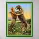 Esta é uma bela pintura de cão de vintage com um Wolfhound irlandês saudando seu dono. Artista Desconhecido.