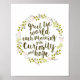 "Saudamos o mundo todas as manhãs com curiosidade e esperança." Uma mensagem adorável (que encontrei no meu biscoito da sorte) que nos lembra de manter uma mente aberta e um coração aberto. Palavras de caligrafia à mão estão numa floresta escura e profunda verde e rodeadas de uma coroa natural de floresta sábia.