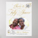 A foto do casal é colocada contra uma faixa diagonal macia, em prata branca e clara, com tipografia falsa de folha de ouro e sotaques de rosa. Nomes e data de aniversário de casamento são editáveis para criar uma adorável poster para enquadrar ou facilitar na celebração. Por favor, procure a coleção de aniversário de Cheers to Fifty Year para coordenar livros e convites para convidados, bem como itens de festas.