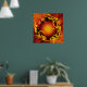 De l'autre côté, une **carpe Koi orange** nage élégamment, représentant la persévérance, la chance et la prospérité. Ses écailles scintillantes captent la lumière, évoquant l'équilibre entre la force et la grâce. La carpe semble en parfaite harmonie avec les éléments géométriques du poster, ajoutant une touche de sérénité et d’espoir.