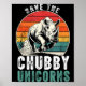 Poster Save The Chubby Unicorns Funny Retro Rhino Animal