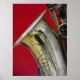 Saxofone em fundo vermelho.