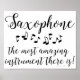Saxofone, o instrumento mais incrível que existe texto com uma banda de notas de música é um design de presente de vento de madeira único para músicos de volta à escola, aniversários, feriados e graduação.