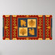 Poster Scarf com leões sentados em ouro. Elementos separa