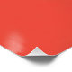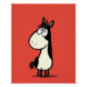 Ein minimalistisches schwarz-weißes Pferd mit großen Augen vor einem kräftigen roten Hintergrund.