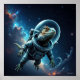 Esse compósito digital imaginativo coloca uma iguana em um cenário de outro mundo. O réptil parece ser um astronauta, flutuando serenamente na vastidão do espaço, cercado por uma nebulosa giratória, estrelas distantes e planetas. Essa mistura de natureza e ficção científica cria uma imagem cativa e humorística que é bonita e inesperada.