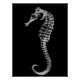 Capture the delicate beauty of the ocean with this intricate seahorse skeleton illustration. Rendered in a white halftone, x-ray style, this design highlights the unique anatomy of this enchanting sea creature. It's a perfect fit for a minimalist coastal decor theme, a dark academia aesthetic, or a 'cabinet of curiosities' collection. This sophisticated, scientific piece is ideal for marine biology enthusiasts, beach lovers, or anyone who appreciates elegant nautical art.