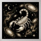 This artwork embodies the essence of Scorpio—passionate, transformative, and deeply intuitive. A symbol of depth, mystery, and inner strength, the design blends darkness and illumination to create a bold yet sophisticated presence.