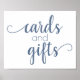 Enfumaçado de tendência, use o chá, a festa ou a sinalização de mesa azul e branco horizontal "Cartões e presentes", com um script divertido e escrito à mão. O clássico design inclui uma moderna camada de tipografia de citações feitas à mão. A bela fonte com uma cor de fundo personalizável facilita o ajustado de qualquer tema. Para outras cores ou produtos correspondentes, visite a loja justFharryn Zazzle ou entre em contato com o designer, c/o fharryn@yahoo.com Todos os direitos reservados. #zazzlemade