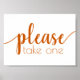 Cor de laranja queimada e cor de laranja branca e horizontal branca "Por favor, pegue um" chá, festa ou sinalização de mesa de recepção com um roteiro divertido e casual, escrito à mão. O clássico design inclui uma moderna camada de tipografia de citações feitas à mão. A bela fonte com uma cor de fundo personalizável facilita o ajustado de qualquer tema. Para outras cores ou produtos correspondentes, visite a loja justFharryn Zazzle ou entre em contato com o designer, c/o fharryn@yahoo.com Todos os direitos reservados. #zazzlemade