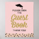 O "Dourado Script Please Sign The Guest Book Formando Sign" é uma decoração de festa de formatura na moda e elegante projetada por CaMiDesigns. Este cartaz apresenta um design de caligrafia ousado, emparelhado com um confete de ouro e um boné de formatura, fazer a forma perfeita de direcionar os convidados para o livro de hóspedes na sua celebração de formatura. Para pedidos, envio, informações sobre o produto e assistência adicional, entre em contato diretamente com o Atendimento ao cliente da Zazzle.