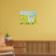 Garden themed Christian wall decor featuring a scripture from the Bible book of Luke 13:19 KJV "It is like a grain of mustard seed..." and decorated with a field of bright yellow mustard with flowers in full bloom under a soft blue sky hand painted with watercolor.