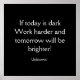 Se hoje estiver escuro - trabalhe um pouco mais e amanhã será mais brilhante. Citação desconhecida Compre meu poster de parede "Se hoje está escuro" hoje! O fundo preto com letras brancas pode ser personalizado de acordo com o seu gosto.