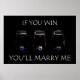 Se ganhar, me casado. Vista aproximada de três óculos de tombo virado com códices, azulejos ou dentro de cada copo. Isolado contra fundo preto. Impossível!