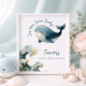 Sea You Soon Whale White Baby Shower Favors Sign. Available digitally and printed. Easily personalise the text to your details. With a watercolor illustration of a whale and wave.