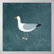Uma gaivota atada ao fundo do oceano verde. Perfeito para aqueles que amam pássaros sassos e a costa.