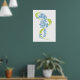 Seahorse dusk blue, lime green and seaweed on white background kids poster print.