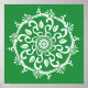 Esta mandala branca senta-se sobre um fundo verde. As cores são muito relaxantes e pacíficas. Parte da coleção Payon Mandala.