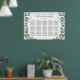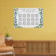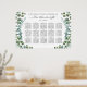 Elegante gráfico horizontal de assentos de casamento poster apresenta um monograma moderno de escrita de caligrafia dos nomes da noiva e do noivo e um design de verde-aquarela orgânico com folhagem de eucalipto, folhas e galhos de eucalipto de dólar em tons de menta, verde, azeitona e verde azul-mudo. Perfeito para um evento de primavera ou verão. Personalize com seus nomes de convidados de casamento e números de mesas para seu dia de casamento bizarro.
