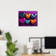 Poster Seis corações 3D sobre fundo roxo