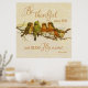 Pintura adorável de pássaros empoleirados em um membro com o verso das escrituras de Psalm 100:4, "Seja grato a Ele e abençoe seu nome", que seria perfeito para Ação de Graças. Projetado por Simplesmente Escritura; pintura de pássaros cortesia do Compro Antigo Design.