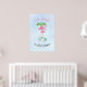 Um poster com uma citação engraçada: Seja um flamingo num bando de pombos. Projetado com uma ilustração de um flamingo cor-de-rosa mãozinho e bebê parado em um leito de flores florais suculentas com palmeiras verdes balançando nas costas. Tropical e bonito. O fundo é uma aquarela azul-claro de verão com pistas de púrpura.