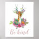 Poster Seja gentil. Veado floral de aquarela. Animal de v