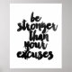 Este é um belo impressão de arte motivacional com citações motivacionais e que apresenta "Seja mais Forte do que suas desculpas"